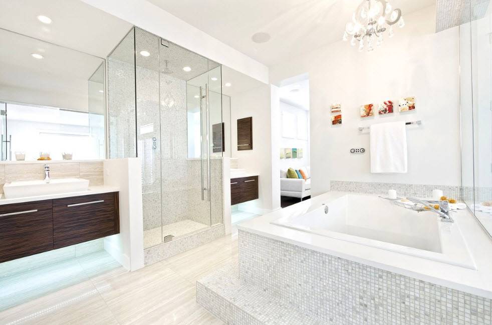 - Белая мозаика расширяет пространство, делает его светлее. Она способна кардинально сменить внешний вид комнаты.