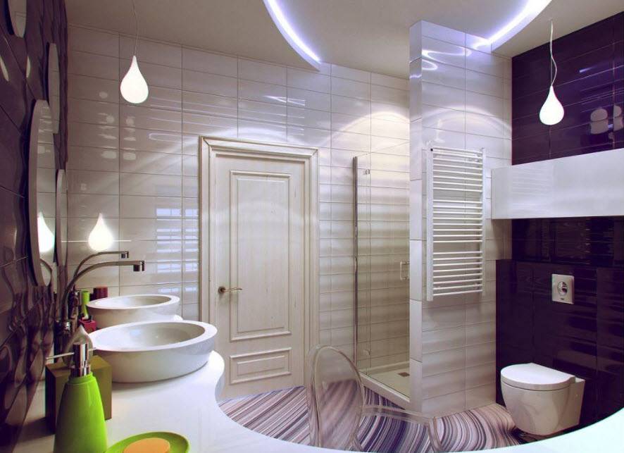 Маленькую ванную комнату желательно постараться увеличить визуально. В этом помогут разные приемы укладки плитки. Зрительно расширяют пространство: