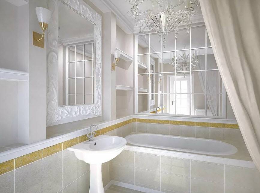 Если на стене висят зеркала или другие предметы интерьера, учитывают их положение во время облицовки