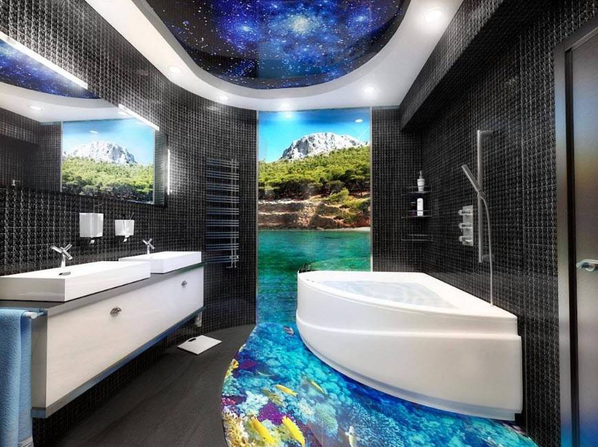 Интересно, что это может быть мозаика растяжка для ванной, монтаж которой не занимает много времени. При выборе важно смотреть обработку отделочного материала препаратами против коррозии, деформации и порчи от воды. Иначе облицовка не выдержит влаги и пара.