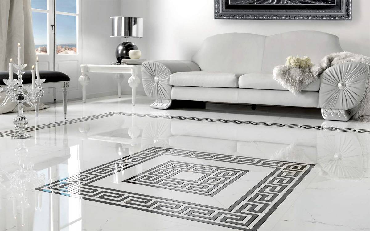 Напольная плитка поможет реализовать классику в ее самой роскошной интерпретации, особенно, если тому способствует площадь жилья. Это тот случай, когда глянец будет выглядеть уместно, особенно в сочетании с керамогранитом под мрамор или классическими узорами.