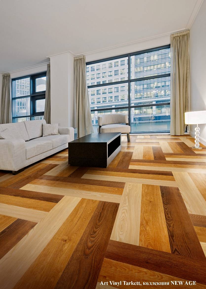 Выпускаются коллекции как привычных нам плиток в виде квадратов разных размеров, так и удлиненные плиты с фаской или без, которые уже получили название «виниловый ламинат». Сочетая разноразмерные планки, цвета, фактуры, можно создавать действительно уникальные, эксклюзивные напольные покрытия.