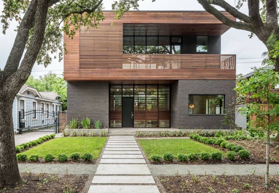 — Современный стиль. Ландшафтный дизайн двора частного дома в современном стиле подразумевает не такое строгое следование цветовой гамме и лаконичности, как в минимализме. Без ущерба стилю здесь можно позволить себе детскую площадку ярких цветов во дворе, красочные подушки на диванчике и разноцветные стулья в столовой. Правда, основа остается нейтральной (серое термодерево, светлая, белая или серая мебель, нейтральный цвет фасада дома, декоративный камень серых или черных оттенков). Современный сад подойдет дому только в современном стиле.