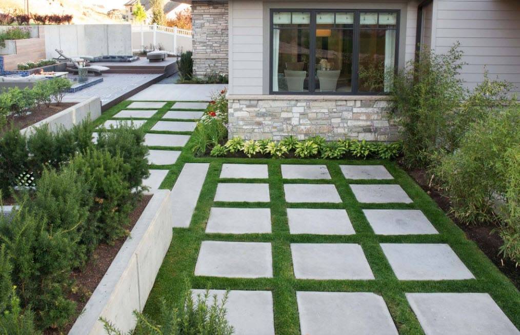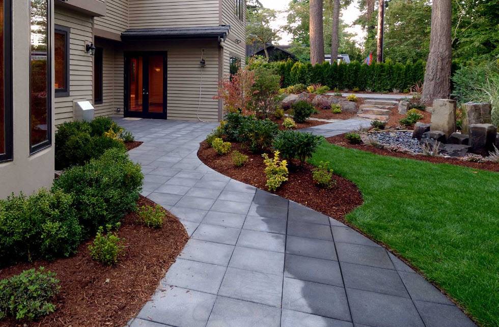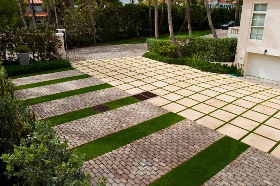 Тротуарная плитка во дворе частного дома: фото стилей и видов укладки