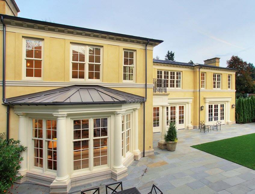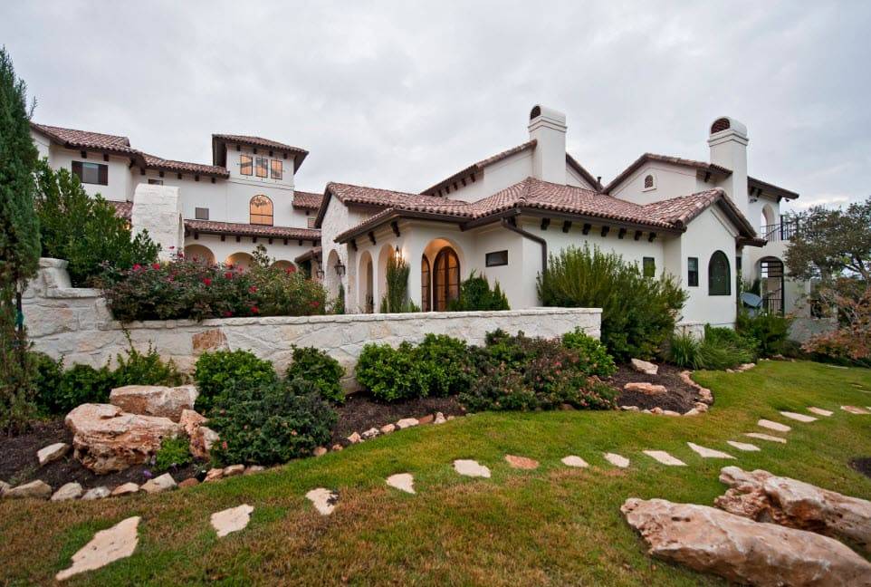 — Средиземноморский стиль. Он требует лишь плитки охристого оттенка, кованых элементов декора и мебели и ярких подушек на патио. В выборе растений он неприхотлив, все летние цветущие растения здесь будут как раз кстати. А от традиционных кустарников средней полосы лучше отказаться в пользу туй (напоминающих кипарисы), роз и экзотических теплолюбивых растений. Средиземноморский стиль отлично смотрится при доме с бежевыми, коричневыми, белыми фасадами и в любом теплом оттенке.