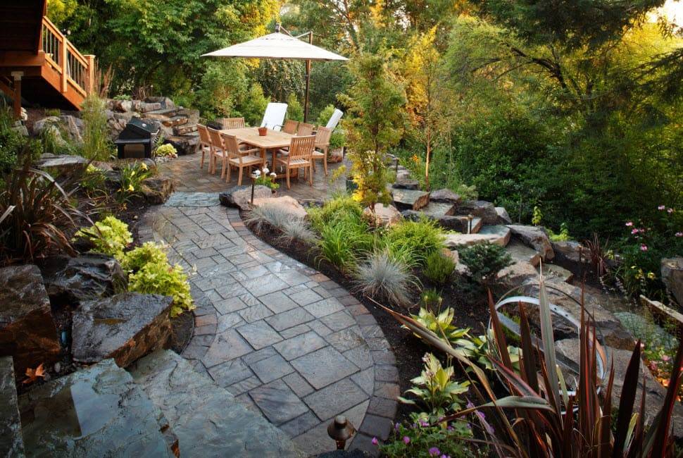 - Дорожка должна вписываться в стиль и рельеф участка, выполняя функцию связующего звена.