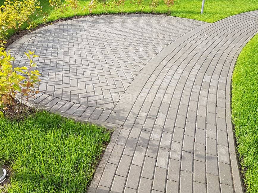 - клевер. Некий стандарт для фигурных изделий. На фото видно, что брусчатка обладает закругленными лепестками по краям;