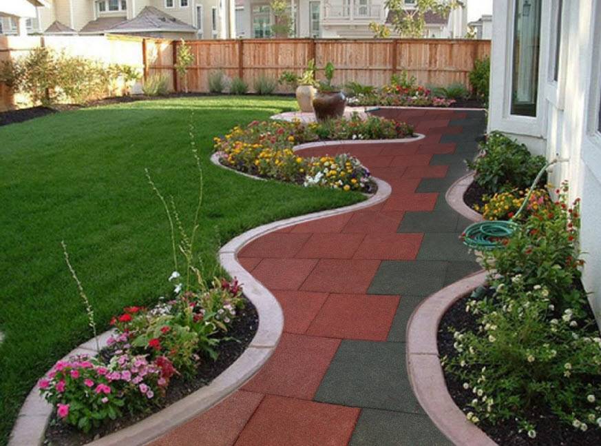 В основном резину применяют не для оформления дорожек, а для того, чтобы отделывать ею детские площадки — если ребенок на такой упадет, травма ему не грозит. С другой стороны, если в доме есть дети и пожилые люди, она может быть актуальна и для дачного участка.