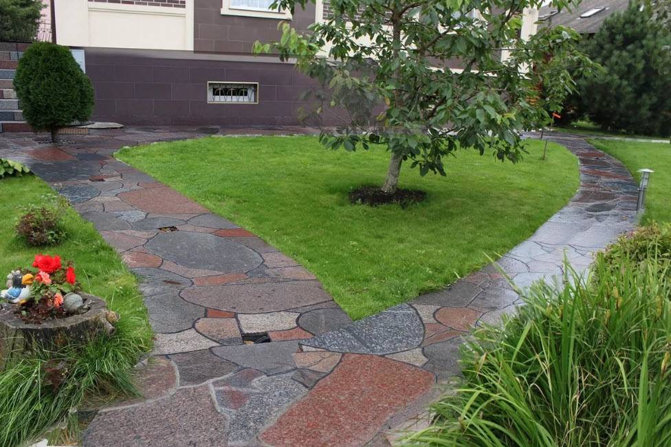 Такие дорожки с неопределенным узором привлекают внимание своей пестротой и непредсказуемостью. Они очень естественно смотрятся при создании ландшафтного дизайна на участке
