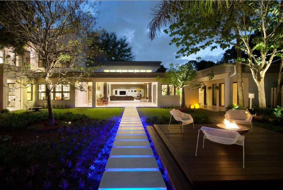 - Стоит делать немного разную яркость освещения, чем ближе к дому – тем выше она должна быть.