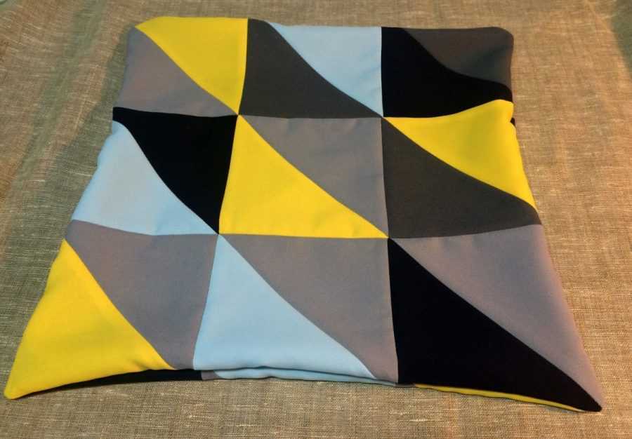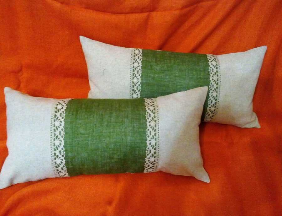 - Стандартные. Это обычные прямоугольные изделия, которые представляют собой два фрагмента, сшитых между собой. Это простой и быстрый способ изготовления. Такую подушку можно использовать и для сна;