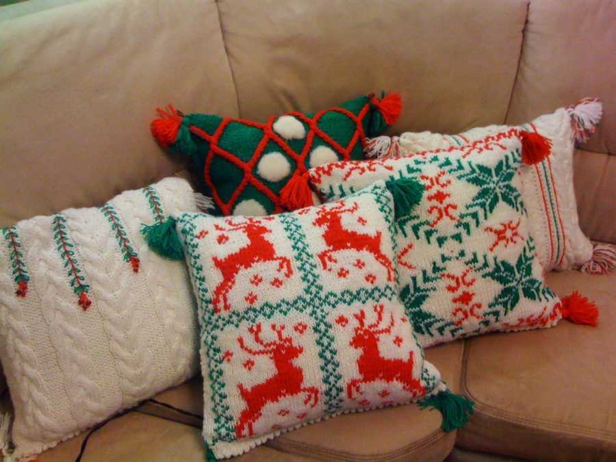 При наличии определенных навыков можно связать подушку из плотной пряжи. Гармонично будет смотреться использование различных оттенков в одной композиции. Отлично будут смотреться натуральные ткани: хлопок, лен, шелк.