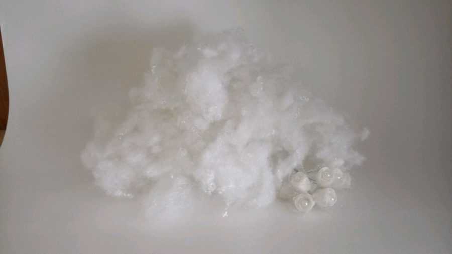 - Обычная вата. Это простой и дешевый вариант. Нужно учитывать, что она достаточно тяжелая и, спустя некоторое время пользования, начинает скатываться;