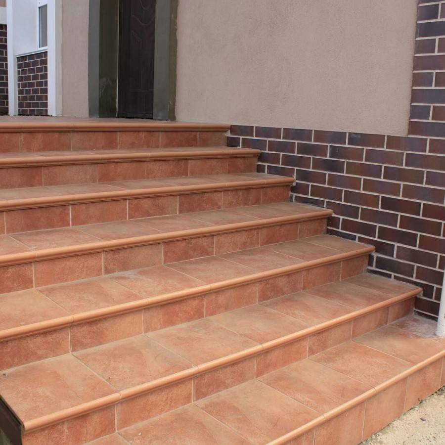 Керамическая плитка. Таким материалом в основном порывают бетонные ступени. Для облицовки используют специальную плитку, передний край, которой оснащен бортиком. Такой материал следует предварительно раскроить. Затем начинают укладывать резанной частью к подступени.
