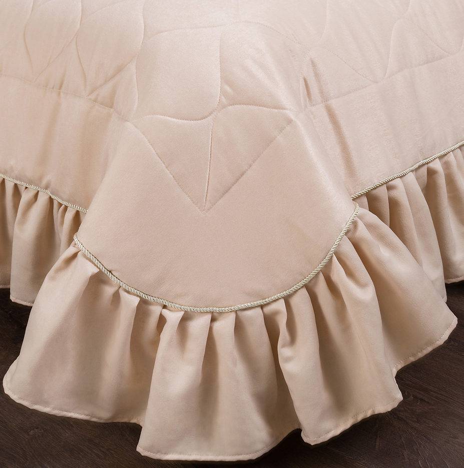Обычный отрез материи нужного размера необходимо обработать таким образом, чтобы получить нужный результат. Покрывало может быть легким, струящимся, без подклада или основательно плотным, с наличием стежки. Кроме того, банальный прямоугольник можно украсить: дополнить оборкой, рюшами, декоративной строчкой, сделать вышивку, аппликацию и получить уникальное покрывало.