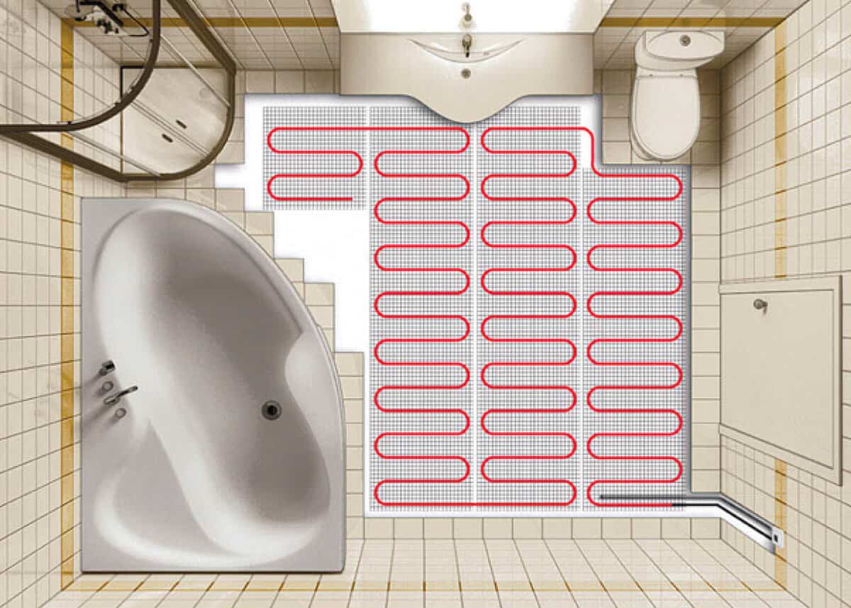 При обустройстве стяжки в ванной владелец помещения может смонтировать нагревательные элементы, которые подключаются к водоснабжению или бытовой электрической сети. В конструкции пола предусматривается аварийный сток для воды, снижающий риск затопления квартиры и расположенных ниже помещений при разрушении магистральных водопроводов. При обустройстве электрического обогрева следует предусмотреть отдельную цепь питания, снабженную автоматическим предохранителем.