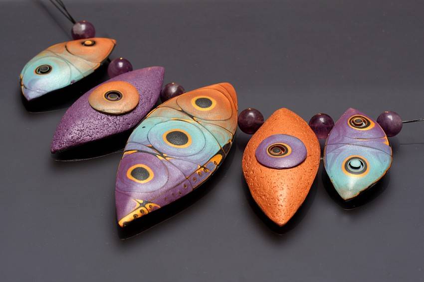 - Техника плавного перехода цвета – полимерную глину смешивают в разных пропорциях, добиваясь эффекта перехода одного цвета в другой.