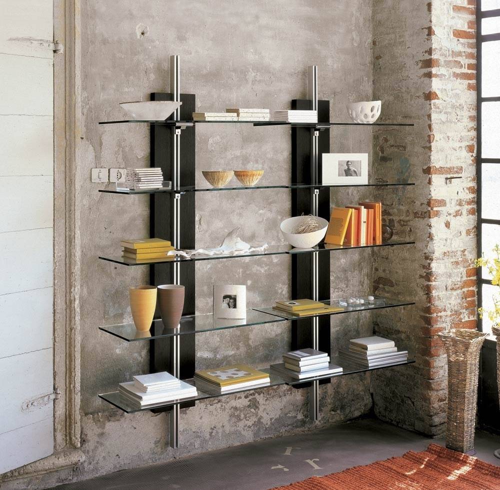 Из него удается собрать практически вечные высокопрочные конструкции, однако в привычные классические интерьеры металлические полки вписываются с трудом. Кроме того их не следует использовать в помещениях со специфическим климатом, отличающимся повышенной влажностью, так как металл подвержен коррозии.
