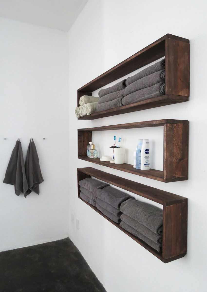 Если и делать полки в ванную комнату своими руками, то подвесные. Почему? Начнем с того, что для этого нам не нужно будет переделывать ремонт, что уже однозначно хорошо.