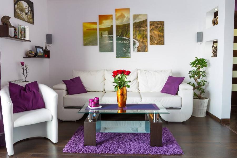 С помощью модульных картин можно визуально приподнять потолок или раздвинуть стены комнаты
