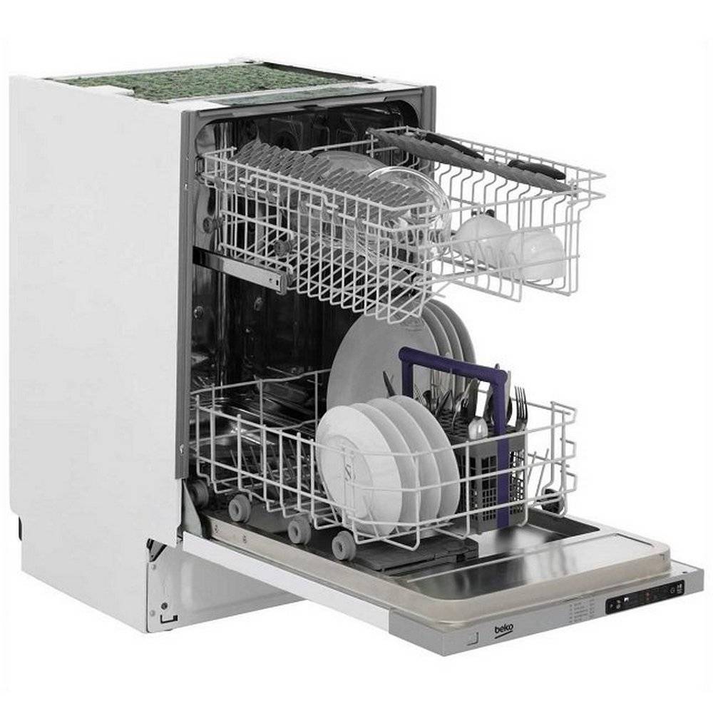 Beko DIS 25010 прекрасно сочетает в себе недорогую цену с высоким качеством мытья, а еще компактность с отличной вместимостью. На этом плюсы машинки не заканчиваются. Благодаря двум разбрызгивателям она отмывает посуду по всех частях корзины. Кстати, эта модель вмещает 10 полных комплектов посуды, что довольно много для ширины 45 см. У нее хороша комплектация с длинными трубками для воды и слива, благодаря чему посудомойка легко устанавливается на кухне и встраивается в мебель по инструкции. Для бюджетного сегмента этот экземпляр отлично справляется со своими функциями. Слабые места машинки — некачественная сушка, плохо закрывающийся отсек для порошка и отсутствие режима полоскания.