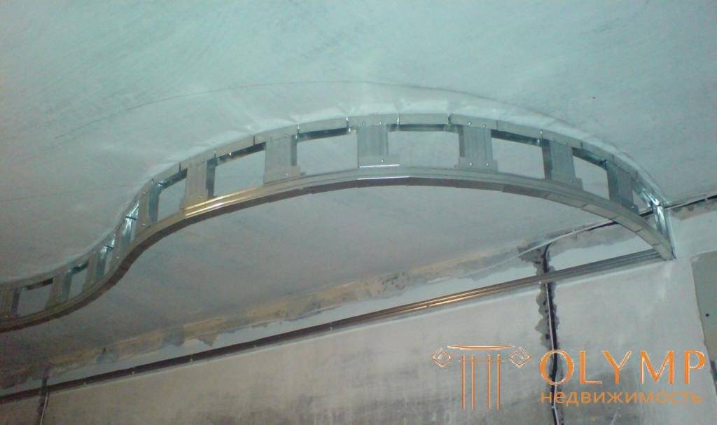 - прикрутить криволинейный профиль к потолку из гипсокартона саморезами по металлу с шагом 35 см;