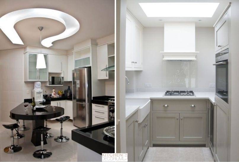 Цвет и дизайн одноуровневого гипсокартонного потолка в маленькой кухне