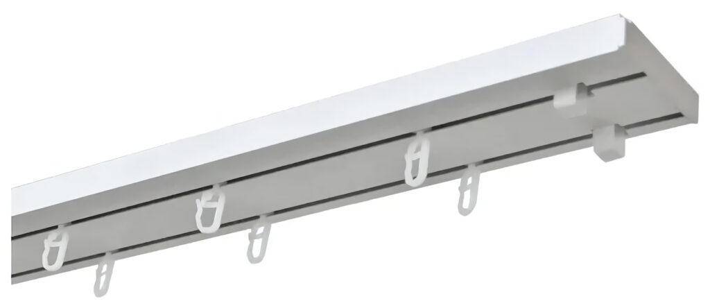 - Любая длина. Обычно потолочный шторный карниз идет куском до 4 метров, но есть соединители, которые позволяют нарастить длину до требуемой.