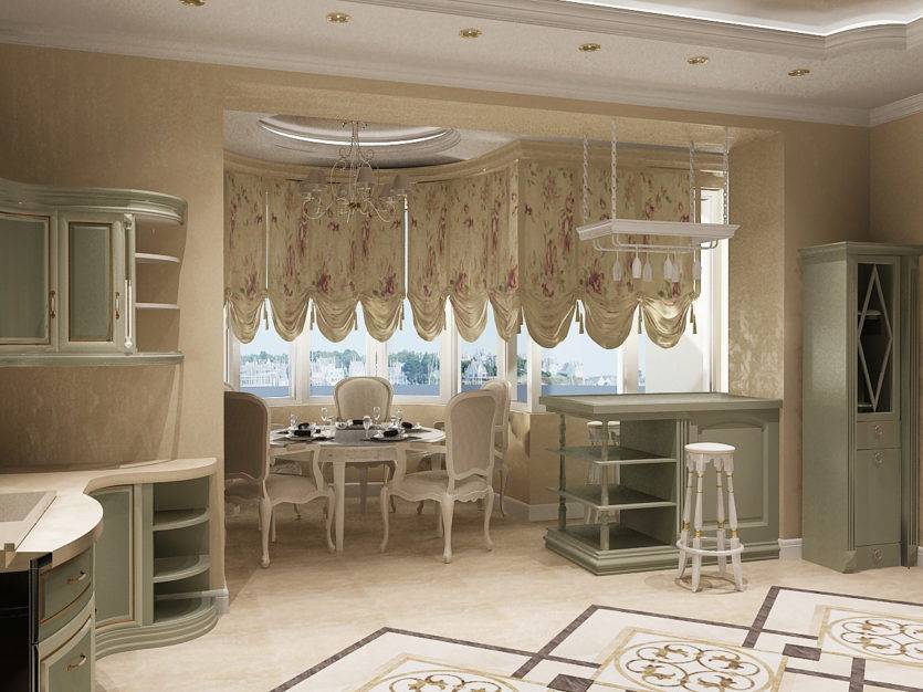 Столовая очень удачно расположена перед большим эркерным окном, кухня светлая, просторная