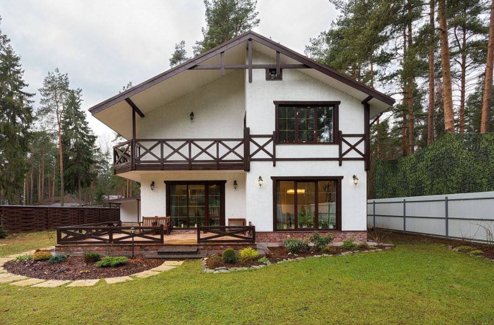 Часть проектов домов с мансардой также предполагает обустройство балконов или террас, что существенно увеличивает площадь дома и делает его более романтичны и живописным.