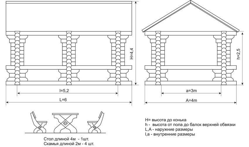 Беседка-летняя кухня с барбекю, мангалом. Проекты, фото, чертежи сооружений