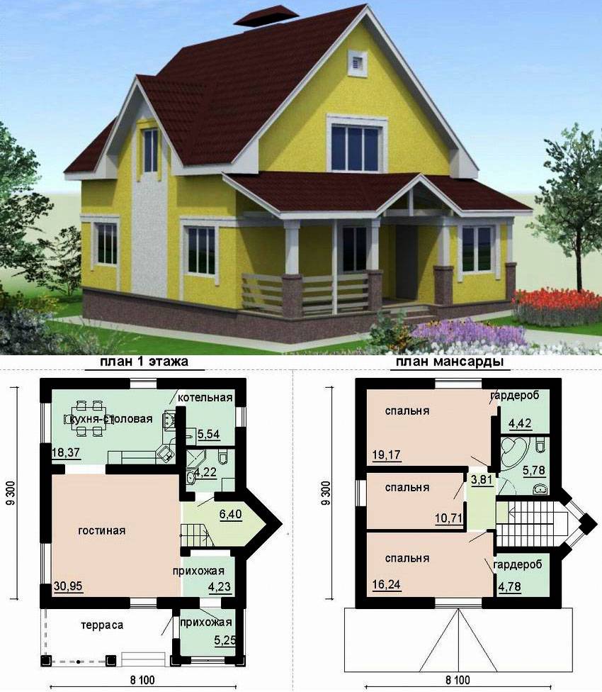Проект небольшого одноэтажного дома с мансардой из газобетона
