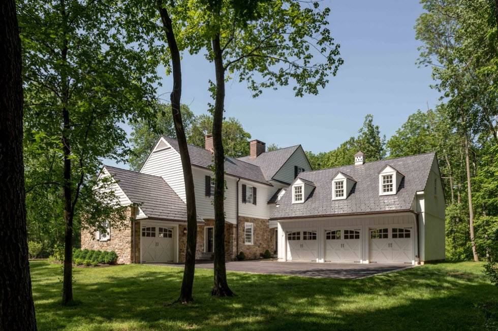 Красивый загородный дом с двумя гаражами в стиле кантри