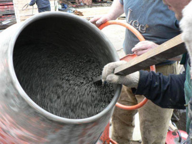 Лучшим способом изготовления прочного бетона самому является приготовление его однородной смеси в бетономешалке. Для этого в миксер помещается цемент, смачивается водой, и состав мешают до превращения в эмульсионную субстанцию, в которую добавляется песок в соответствии с необходимой пропорцией. Затем в бетономешалку помещается фракция наполнителя, и миксер приводится во вращение. При таком способе приготовления смеси в бетономешалке, она не теряет своих эксплуатационных качеств и не расслаивается.