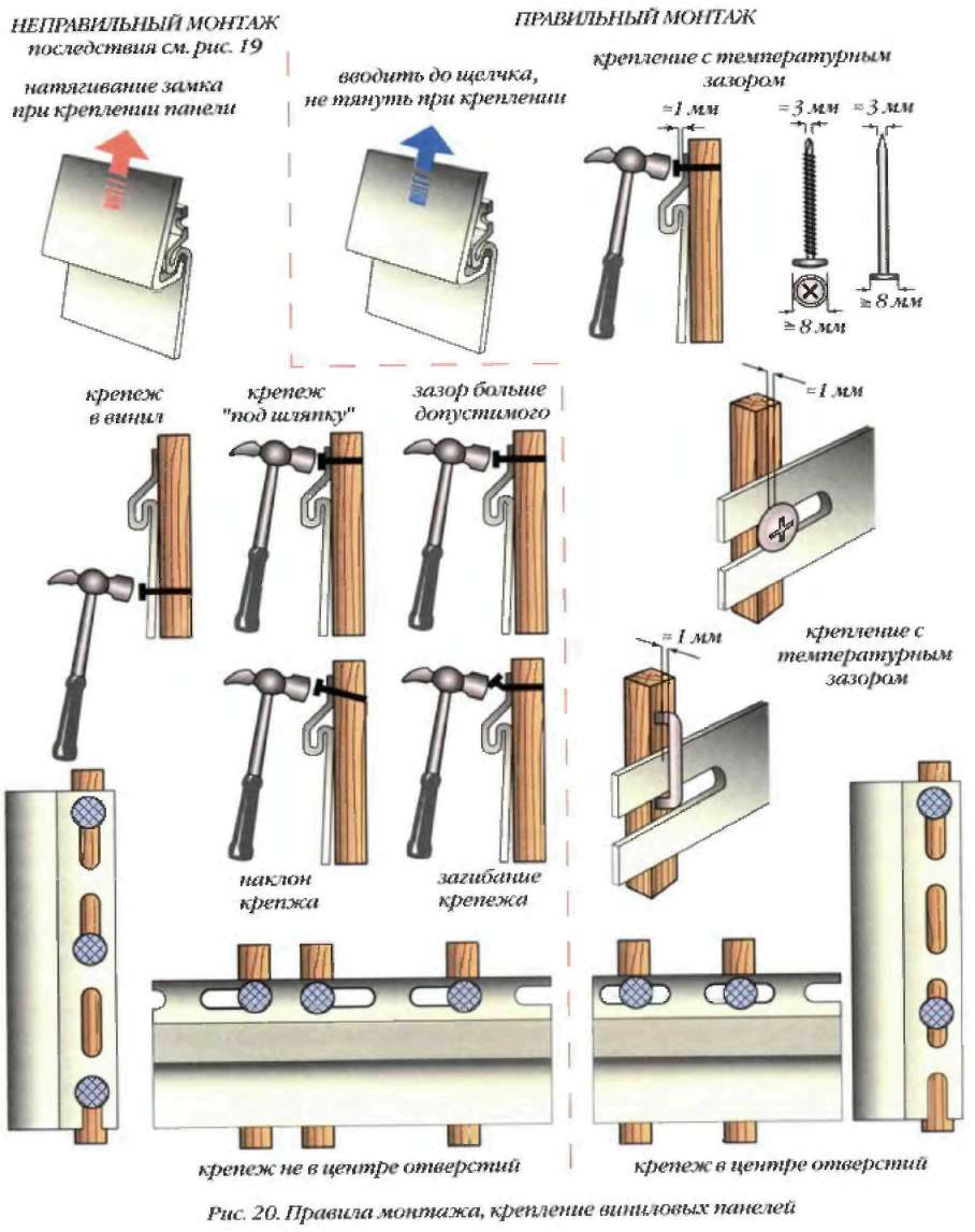 Облицовка ставится точно по центру перфорации под прямым углом. Узнать о точности угла наклона помогают особые измерительные приборы. Между поверхностью сайдинга и шляпками саморезов должен оставаться интервал в 2 миллиметра.
