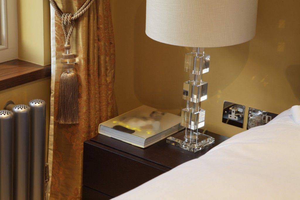 С выключателя у кровати, напомним, мы управляем верхним светом — это дубликат основного выключателя у входной двери. Но и здесь можно расположить дубликат: клавишу, которая обесточит все торшеры, настольные лампы разом: выходя из комнаты, вам не придется отключать каждый прибор по-отдельности.