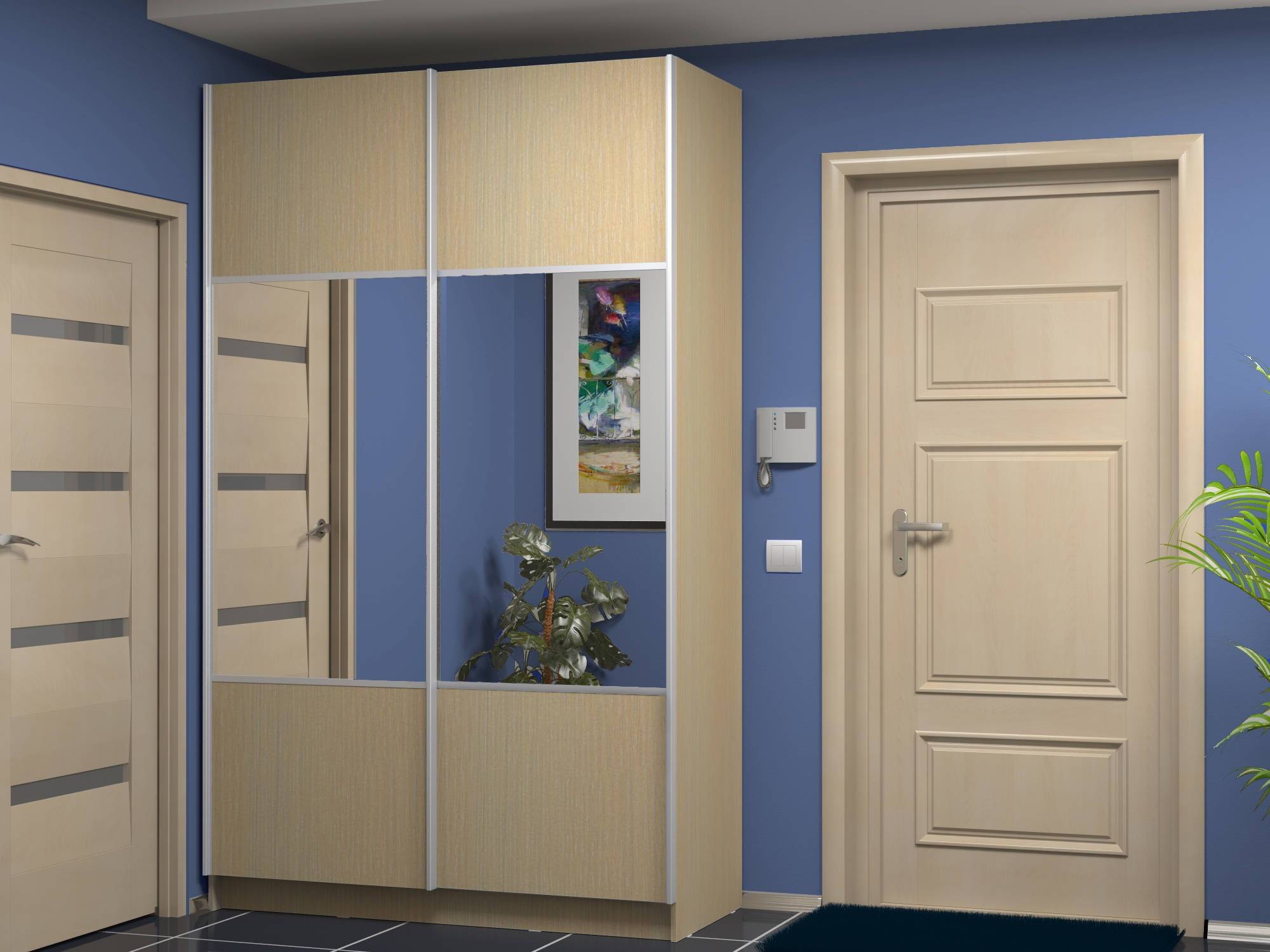 При организации шкафов небольших размеров создается специальная ниша либо раздвижные двери устанавливают в дверной проем на примере межкомнатных. В зависимости от свободной площади, под гардеробную выделяется целое помещение или участок комнаты. Для зонирования пространства в условиях недостатка свободного места используют зеркала, а также различные декоративные элементы в качестве дополнения к оформлению раздвижных дверей.