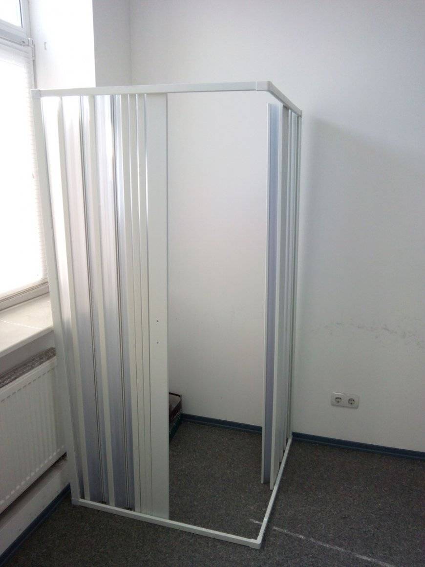 Посмотрите на раздвижные модели из пластика, состоящие из нескольких сегментов. Складные модели для ванной комнаты применяются в сочетании с мягким типом, поэтому их часто называют гармошкой.