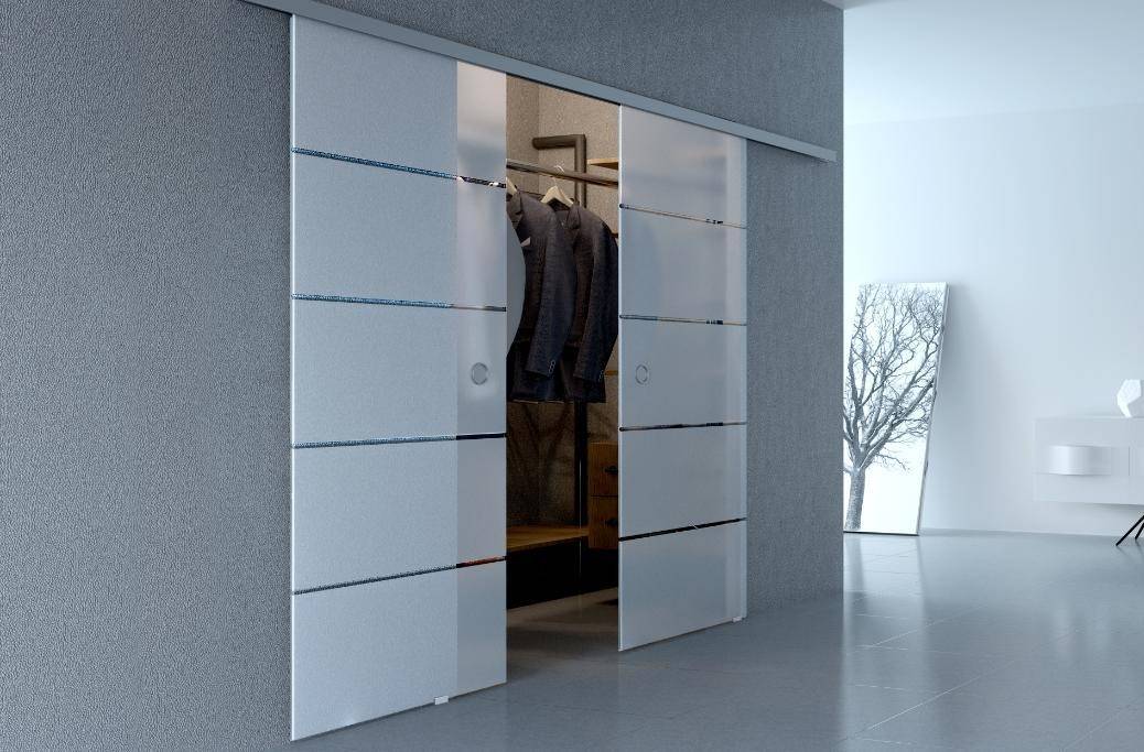 Такой вариант дверей состоит из креплений, направляющих и фасадов