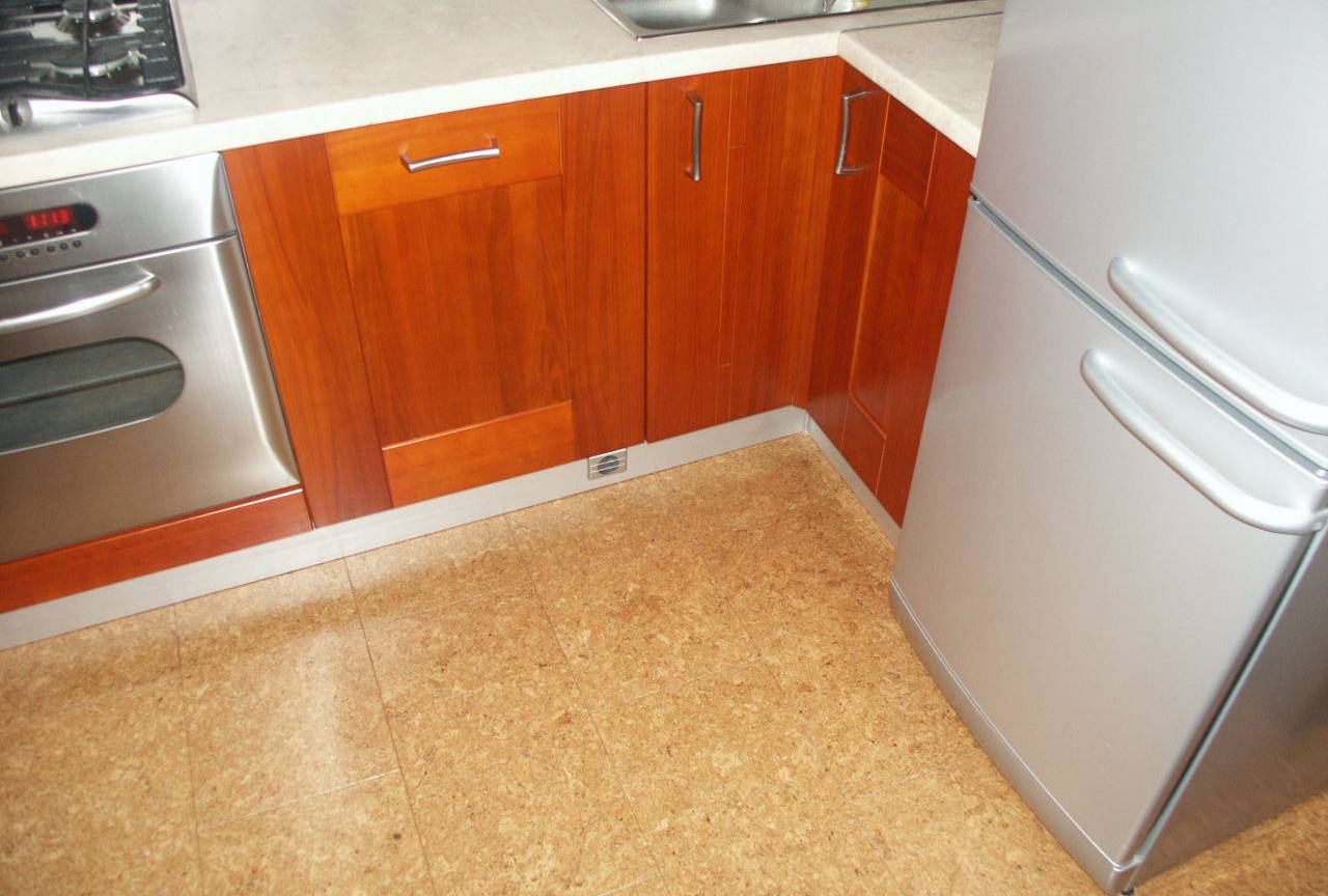 К недостаткам линолеума при укладке на кухне можно отнести его малую толщину, что приводит к разным уровням пола в случае, если в коридоре уложен ламинат. Именно поэтому многие предпочитают выкладывать пол в кухне из непрактичной керамической плитки.