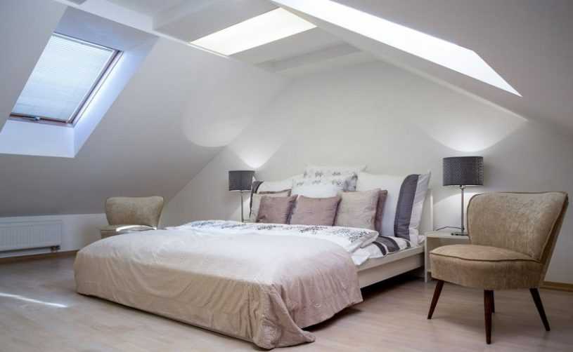 Если сместить кровать к одной из стен, либо установить ее под окно, то нужно уравновесить пространство другими предметами мебели.