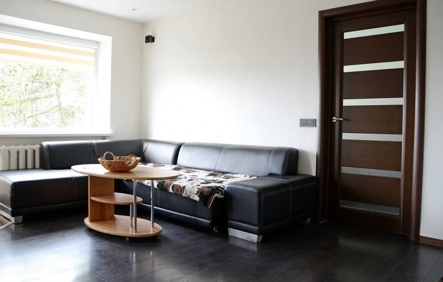 Ставим дополнительную перегородку, отделяющую комнату от коридора. Таким образом получается довольно обширное по размерам помещение, которое можно использовать как кладовку, а можно превратить в гардеробную. Второе помещение — длинное и узкое — разбивается на две зоны: спальню и гостиную при помощи легкой перегородки из гипсокартона или другого листового материала.