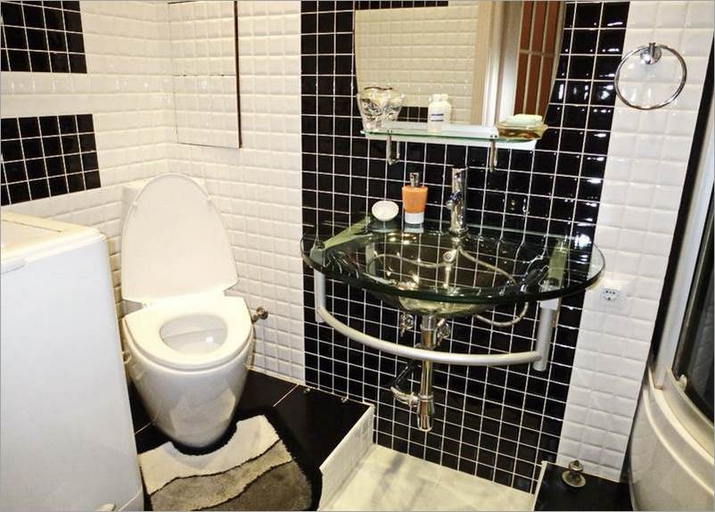 Возможность вмещения стиральной машины шириной 34 см без существенной перепланировки тоже вполне возможна. В этом случае можно использовать умывальник в виде чаши.