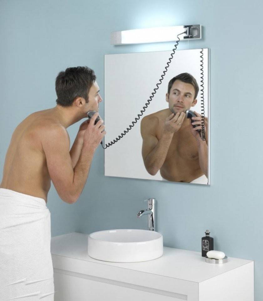 В интернете полно схем подключения розеток в ванной комнате. Главное, позаботиться о том, чтобы никак не мешал конденсат, который появляется на стенах из-за специфических условий повышенной влажности.
