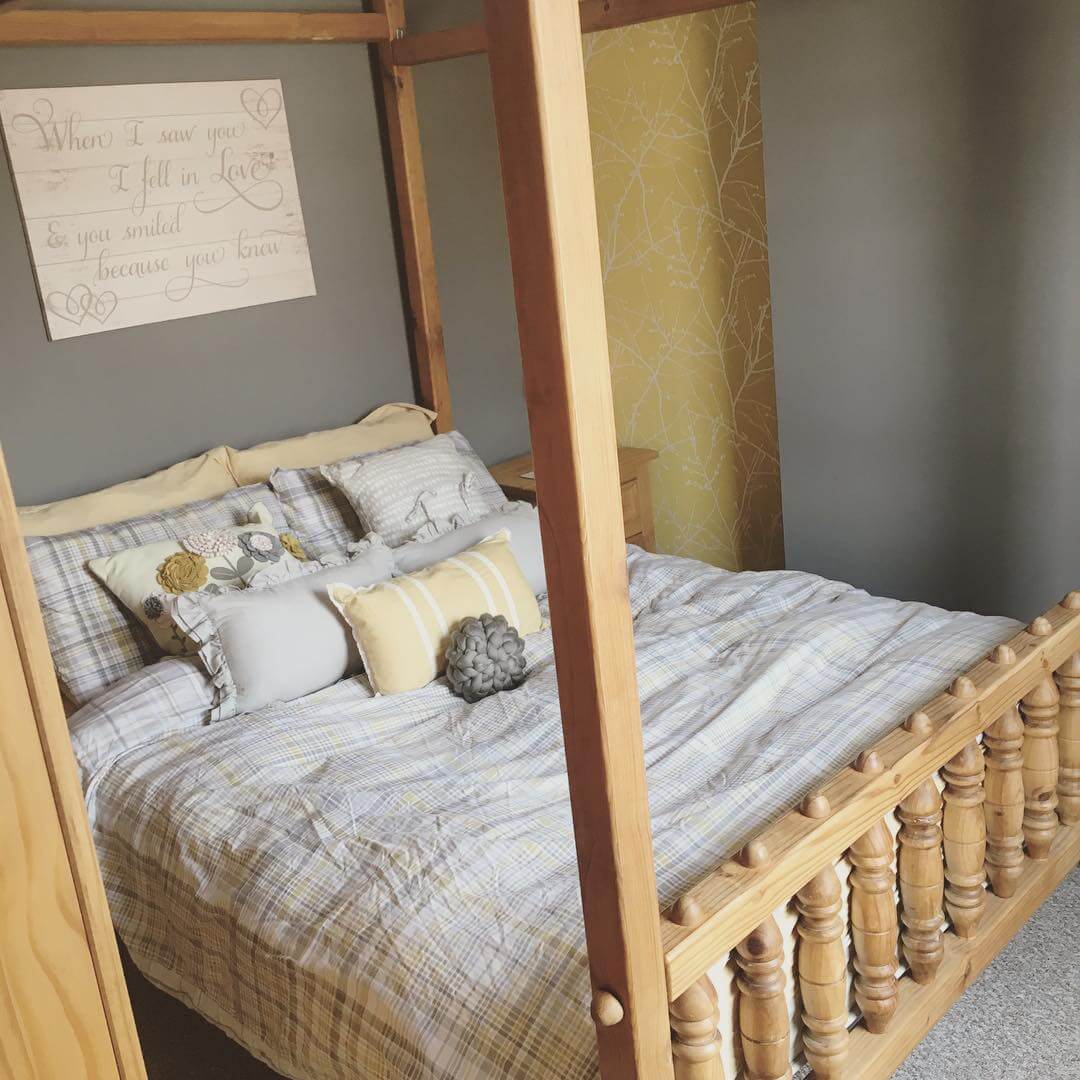 Удачное сочетание теплых оттенков серого и древесных оттенков цвета беж делают комнату уютным местом для сна.