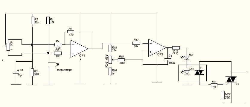 Еще можно усовершенствовать усилитель сигнала с термопары для более точных показаний температуры и оперативного реагирования микроконтроллера на заданную температуру. Это можно сделать заменив операционный усилитель на более качественный по характеристикам.