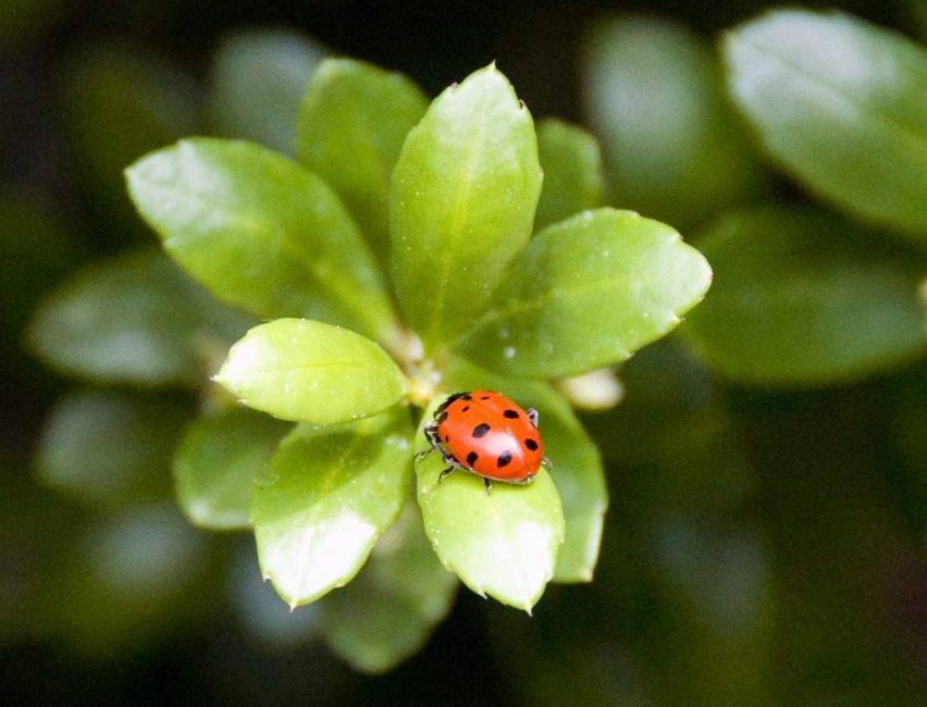 Божья коровка защищает букс от насекомых-вредителей тли и щитовки