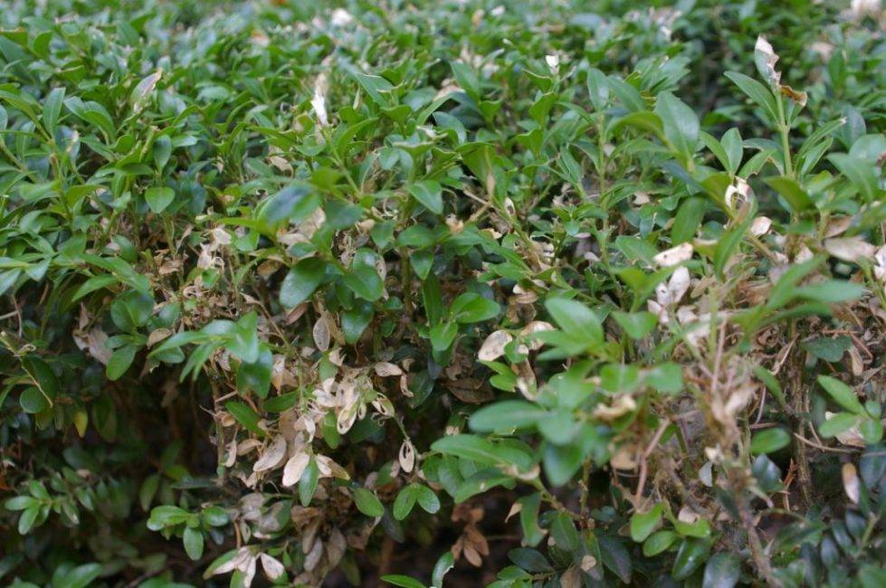 У буксуса довольно много природных вредителей, которые доставляют растению сильные повреждения. Кустарник также легко подвержен грибковым заболеваниям и без своевременного лечения может даже погибнуть.