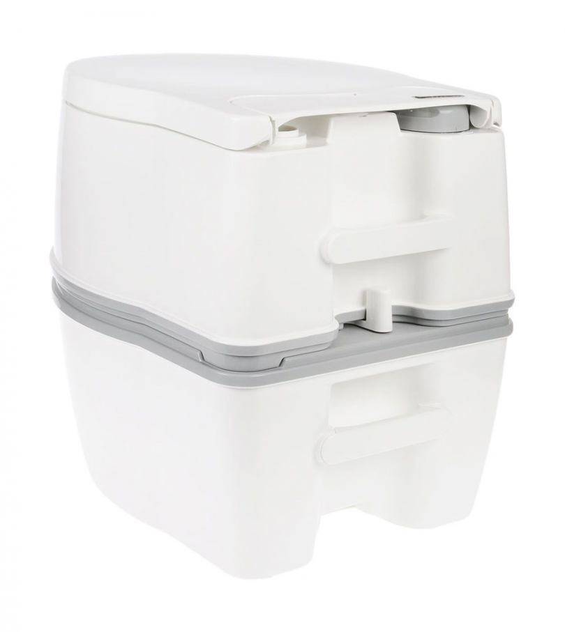 Электрическая модель биотуалета, которая работает на батарейках АА (6 штук по 1,5 В обеспечивают 600 смывов). Состоит из двух раздельных секций: верхнего бака на 15 л и нижнего накопителя на 21 л. Устойчивая модель выдерживает большие нагрузки за счёт ударопрочного корпуса из пластика.