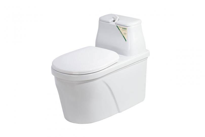 Полипропиленовый компактный туалет, легкий и прочный, создан для стационарной установки. Внешне уборная напоминает обычный унитаз, он крепиться к полу. Смывной бачок наполняется торфом и нажатием рычага высыпается в накопительный резервуар. Вместительная ёмкость для отходов (120 литров) гарантирует долгое использование без необходимости ее очистки. В результате биологической реакции на основе торфа испражнения перерабатываются в компост.